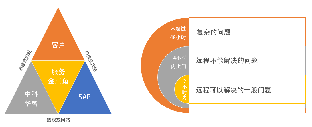 由SAP公司和青島中科華智共同為客戶提供售后服務,青島中科華智提供日常維護和快速的本地服務,SAP公司提供7*24的咨詢服務,并保證系統持續的功能升級。
